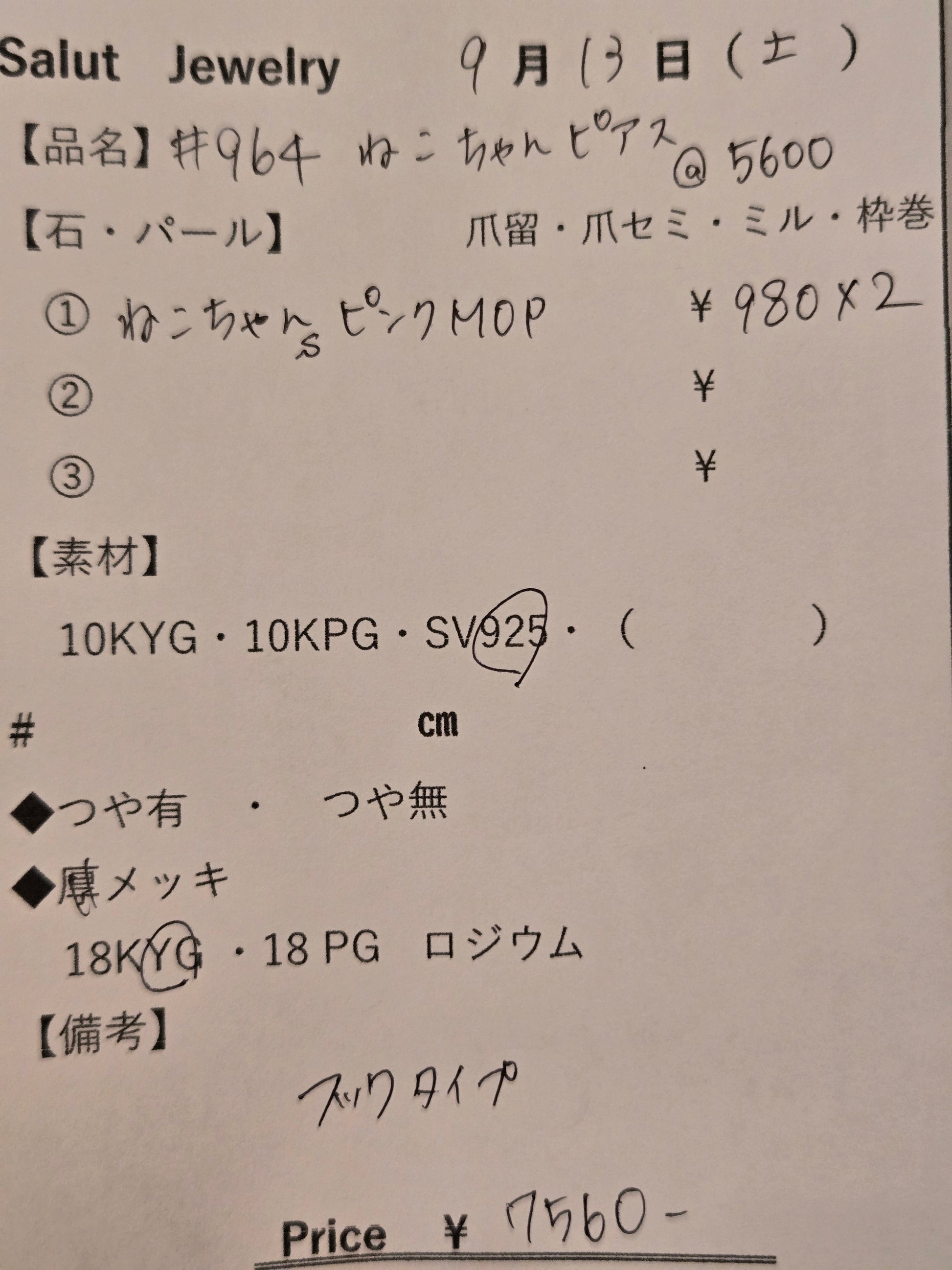 #964 ねこちゃんピアス